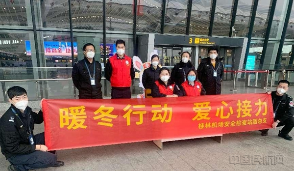 中国民航网 通讯员刘嘉航、马莉 报道:为做好春运返程的服务工作,帮助旅客安全顺畅出行,2月14日,桂林机场安检站“安馨V士”志愿服务队结合桂林机场“金桂飞”品牌的“便捷、智慧、温馨”主题,开展“暖冬行动 爱心接力”志愿服务活动。