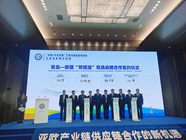 《中国民航报》、中国民航网 记者许晓泓 通讯员王杰 报道:2月17日,在青岛市举行的“中国+中亚五国”产业与投资合作论坛工业互联网分论坛上,青岛国际机场集团、新疆机场集团、南航新疆分公司、青岛航空共同签署青岛-新疆“双枢纽”机场战略合作协议,合力打造“东北亚—中西亚”空中大通道。