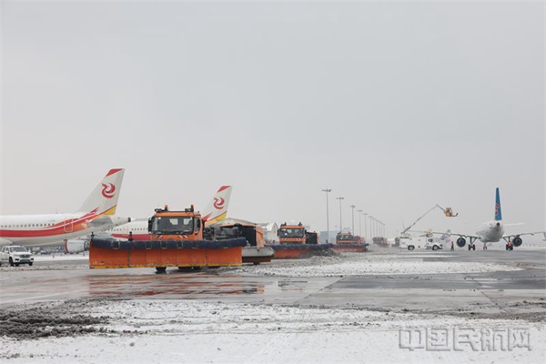 14日6时降雪后,哈尔滨机场以雪为令,立即出动15台扫雪车对跑道、滑行道、停机坪进行清扫。机坪除冰雪采取分区作业模式,与跑道、滑行道除冰雪作业同时开展。因持续降雪,15日凌晨4时20分,哈尔滨机场再次出动15台扫雪车对跑道、滑行道、停机坪进行清扫。同时,采取边下边清,反复作业,反复清理,进行不间断清冰雪作业,确保机场始终处于适航状态。现场运行指挥中心加强与空管、航空公司的沟通,做好信息通报、航班排序放行等工作。机务部门提前部署,争分夺秒抢时间,不间断进行航空器除防冰保障工作,积极应对降雪带来的不利影响,确保航班运行平稳有序。