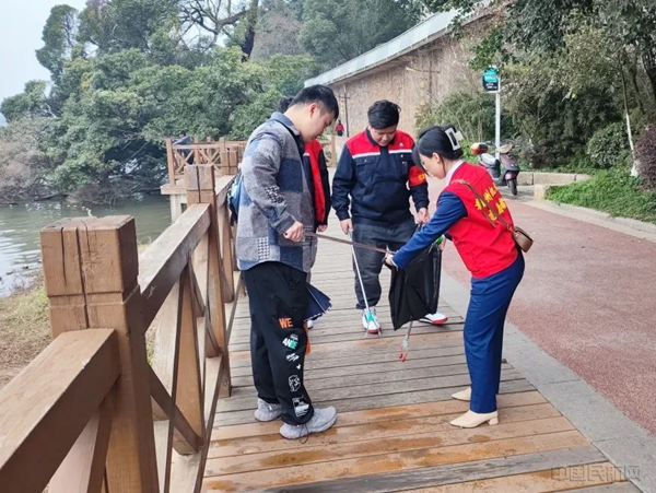 在认真学习雷锋精神后,赣州机场志愿者们立刻投身全市“学雷锋”文明实践志愿服务活动,来到西津门沿河岸边清运河流垃圾及巡河护河,志愿者们手拿垃圾钳、垃圾袋等工具,耐心细致地清除河道积存垃圾,捡拾河边的废纸、果皮、易拉罐、烟头等垃圾,并进行分类扔入相应垃圾桶。仔细查看沿岸河道是否畅通、河道护栏是否安全、宣传警示牌有无破损,守护一方碧水。经过一下午的努力,堤岸环境变得更加干净清爽,“水清、河畅、岸绿、景美”,河岸面貌焕然一新。