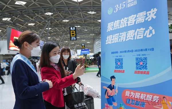《中国民航报》、中国民航网 记者许晓泓 通讯员王超 张明玥 报道:根据民航局运输司相关通知要求,为满足旅客多样化的服务需求,促进行业恢复发展,更好地保护旅客合法权益,3月15日,济南国际机场在候机楼举办以“聚焦旅客需求 提振消费信心”为主题的消费者权益日宣传活动。