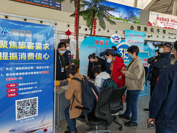 同时,各部门工作人员组织旅客参与民航消费者事务中心“邀您为民航建言献策”活动、“315国际消费者权益日”暨“三顾情”服务品牌互动抽奖活动,进一步宣传民航服务的新模式和新举措,加强旅客对民航的了解,进一步提振消费信心。通过现场扫码关注“襄阳机场公司”公众号并填写旅客满意度调查问卷的形式进行抽奖,奖项设有襄阳机场文创公仔、贵宾服务免费体验、航站楼内折扣消费券等,吸引了大量旅客驻足关注,近百名旅客参与了活动,现场气氛热烈。