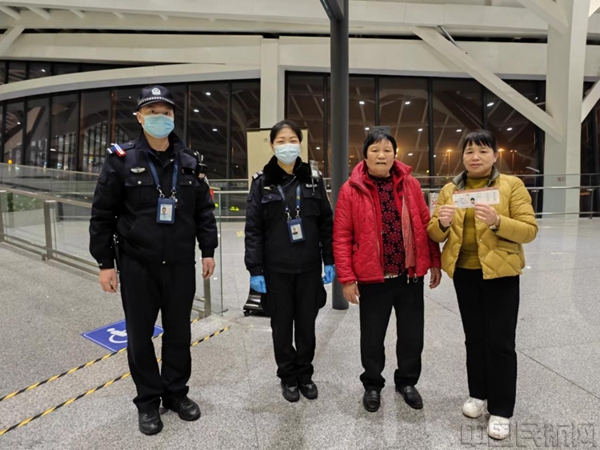 前往登机口的路上,老人的同伴也正在寻找她,看到老人在安检员与机场公安人员的陪伴下向登机口走来,同伴们悬着的心终于落下。同时为“真馨安检”服务竖起了大拇指,老人也十分感动,临别前不断向工作人员致以谢意。