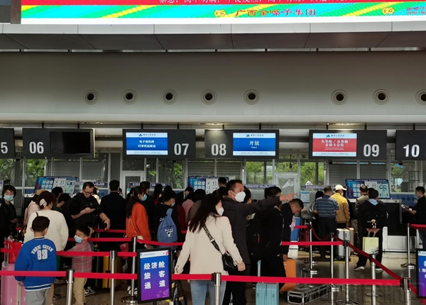 “五一”小长假期间柳州机场加强前端宣传和流动问询工作,安排人员引导旅客使用自助值机和自助行李托运设备,做好“首乘旅客”“晚到旅客”以及“老幼病残孕特殊旅客”的服务保障,并在客流高峰期适时增开值机、安检通道,确保旅客在假期更加顺畅、快捷乘机。