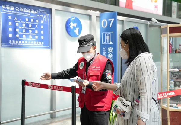 “旅客您好,我们专门推出了‘和顺通道’,请往这边走……”还没到安检,身着红色“中国旅游志愿者”服饰的小哥哥热情地迎了上来,在志愿者引导下,萧女士顺利进入“和顺通道”。