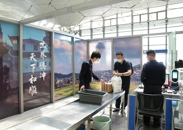 通道引导员主动向前协助旅客过检(本文图片均由腾冲机场提供)