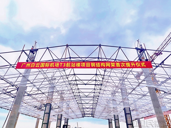 《中国民航报》、中国民航网 记者郭瑛 报道:近日,广州白云机场三期扩建工程T3航站楼项目先后迎来主楼A区首块主体结构(编号A1-4区)封顶、首榀钢结构网架顺利完成提升等重要节点,全力提速机场工程建设。