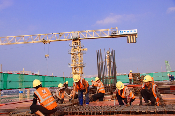 首块主体结构编号A1-4区封顶——钢筋绑扎