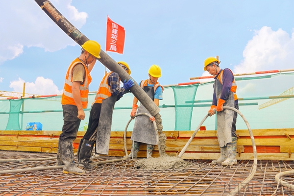 首块主体结构编号A1-4区封顶——混凝土浇筑