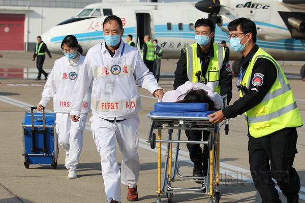 演练包括控制火情、疏散旅客、救治伤员、信息上报、资料收集、延误处理、航空器搬移等7项科目。演练共出动消防车、救护车、公安排爆车、牵引车等车辆10余台,参加演练人数80余人。