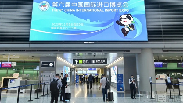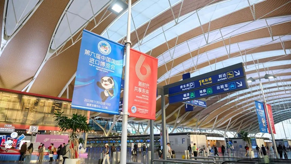 上海两场营造浓郁的进博氛围(上海机场供图)