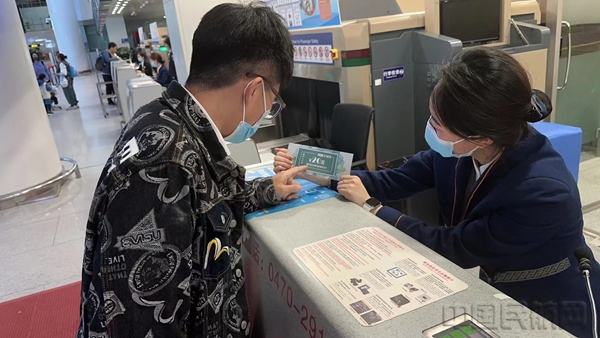 呼伦贝尔机场工作人员为旅客讲解活动内容(呼伦贝尔机场供图)