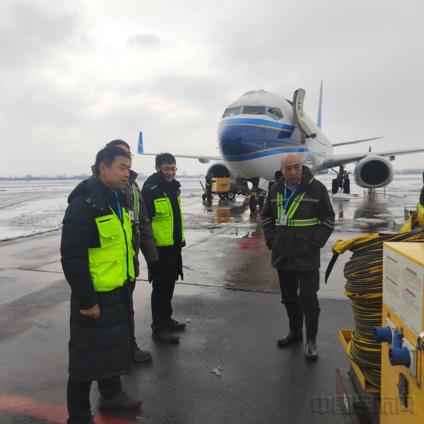 河南监管局监察员冒着风雪,精准监管,现场督导除冰雪工作情况,确保每一项操作安全规范。