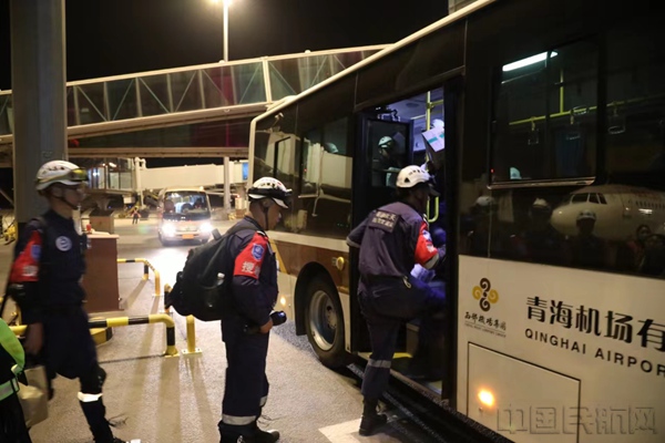 中国民航网 通讯员李泽中 报道:12月19日,福建蓝天救援队一行20人乘坐厦门航空航班在西安机场转东方航空航班,于晚23时25分抵达西宁机场。他们在西宁机场贵宾厅整理装备、更换冬装、开展动员,并与西宁当地3名救援人员会和,一同登上大巴前往甘肃积石山县灾区开展救援工作。