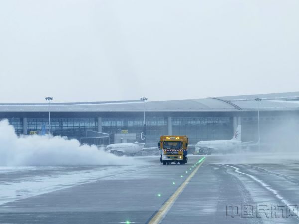 当日凌晨3时,青岛机场启动除冰雪应急机制,全力开展道面除冰雪保障工作。根据雪情启用边下边除除冰模式,分区、分组、有序编队开展机坪跑道和旅客进出机场主干道的除冰雪作业;积极开展航空器除冰工作,与基地航司在两个除冰机坪共同搭建除冰工作线,提高除冰效率。