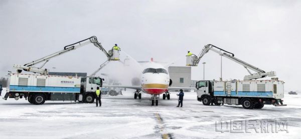 雪情就是命令,雪场就是战场!机坪上,各机场保障单位通力协作、众志成城,采用边下边清作业模式,保障人员坚守在岗,与风雪抢时间,与狂风拼速度,对机坪、跑道、滑行道等区域道面进行除冰雪作业,并不间断进行道面评估,确保机场处于适航状态。为确保每一架飞机安全起飞,各机场机务人员加强对除冰操作、车辆驾驶作业过程的安全管控,联合基地航企做好降雪期间航空器除冰工作,不断提升航空器除冰效率。