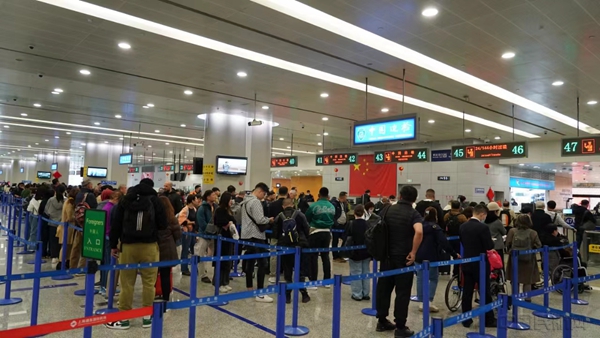 浦东机场口岸迎来春运出入境客流高峰(石明明/摄)