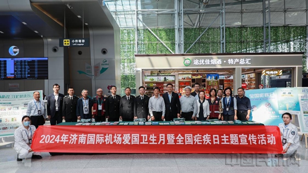 《中国民航报》、中国民航网 记者许晓泓 通讯员黄伟、王珊珊、郭垿恺 报道:为全面开展爱国卫生运动,持续推进口岸疟疾防治工作,近日,山东省机场管理集团济南机场联合济南市卫健委、济南市卫生健康宣教中心、济南海关、济南市疾病预防控制中心、济南市高新区疾病预防控制中心、山东省公共卫生临床中心、山东航空公司、东方航空公司济南基地等单位,围绕“健康城镇,健康体重”“防止疟疾再传播,持续巩固消除成果”等主题,在济南机场航站楼开展爱国卫生月暨“全国疟疾日”宣传活动。