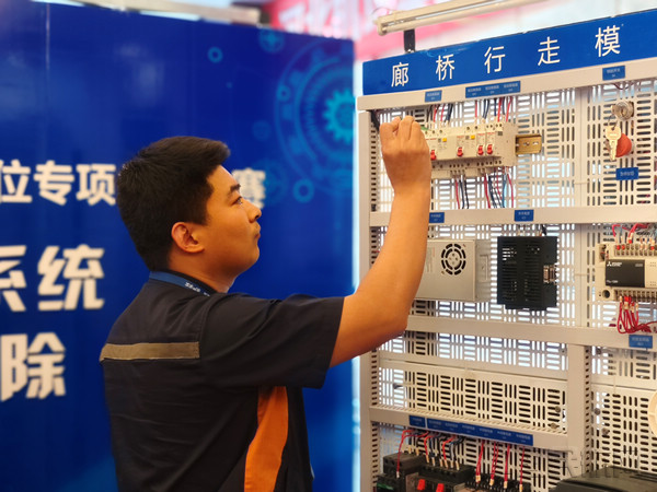 本次竞赛涵盖理论考试、实际操作两个模块。其中,设备维修工竞赛实操部分包括旅客登机桥行走系统模拟电路故障排除、旅客行李传送系统值机传送带模拟电路故障排除两个项目,廊桥操作员竞赛包括廊桥对靠模拟舱门、“穿针引线”两个项目。