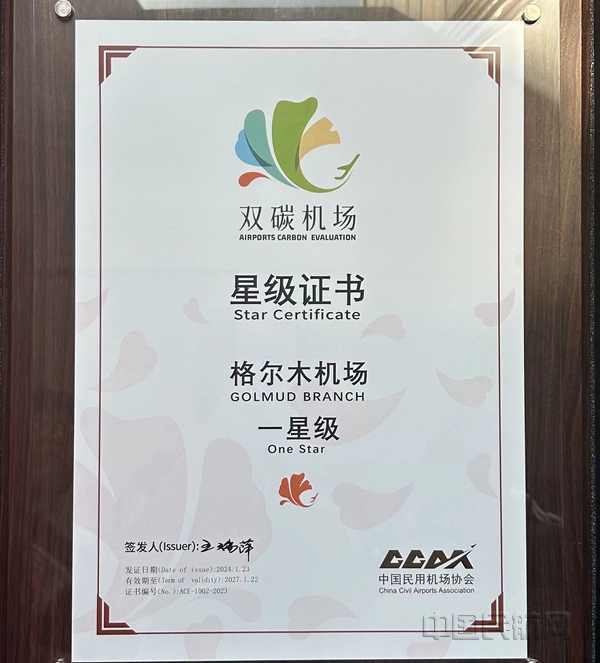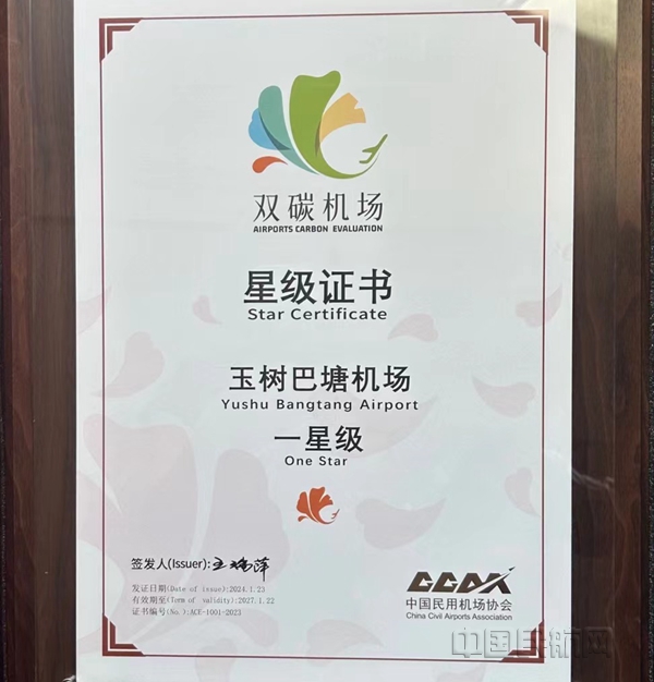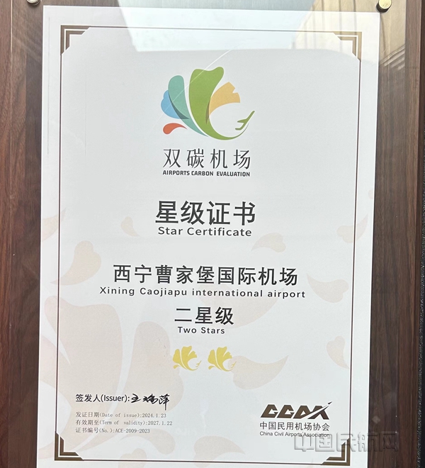 中国民航网 通讯员张青霞 报道:5月22日,中国民用机场协会(CCAA)为青海机场公司西宁曹家堡国际机场颁发2023年度“双碳机场”二星级认证证书及民航业首批碳排放管理能力提升优秀案例证书,为格尔木机场、玉树巴塘机场分别颁发“双碳机场”一星级认证证书。