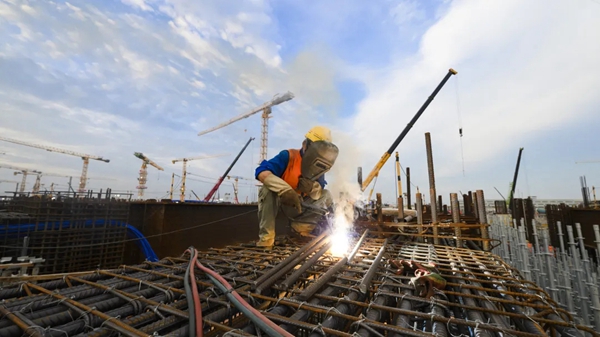 目前,浦东机场四期扩建工程的多个项目群正紧锣密鼓地同步推进,3千余名上海机场建设者昼夜奋战在工程建设第一线,他们有的站在5米高的脚手架上精准专业地进行基坑顶板钢筋焊接,有的在地下深30米的基坑内进行混凝土浇筑作业,抢晴天、战雨天、抓进度、保安全。机场和参建单位,则积极安排好工作排班,并在工程现场专门设置了茶水亭、休息区,并搬来饮水机、制冰机、大型降温风扇,落实防暑降温,更好保障机场建设者们的健康和安全。(编辑:许浩存 校对:陈虹莹 审核:程凌)