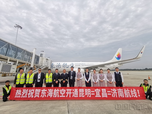 昆明—宜昌—济南航线由东海航空执飞,航班号为DZ6369/DZ6370,班期1357,具体航班时刻为昆明起飞09时55分,抵达宜昌11时45分,宜昌起飞12时45分,抵达济南14时45分;济南起飞17时05分,抵达宜昌19时00分,宜昌起飞19时50分,抵达昆明22时05分。