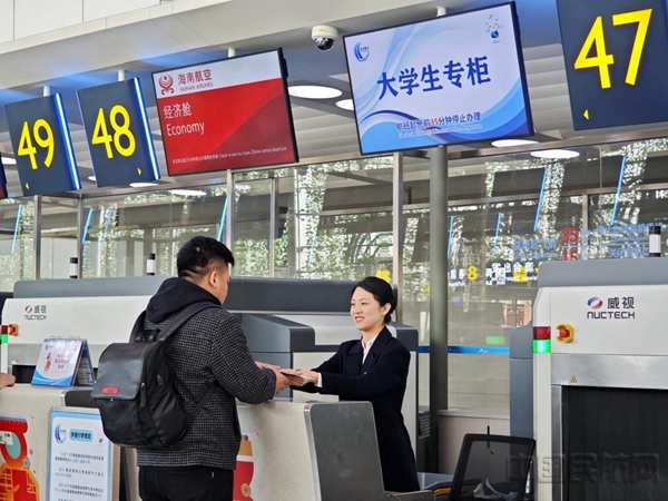 针对春运期间大学生旅客因返乡、旅行、探亲、返校等出行量、行李托运骤增的情况,济南机场增开“大学生专柜”专属值机柜台,安排专人专柜为大学生旅客办理乘机手续、解答乘机疑惑,助力学子轻松、便捷出行。