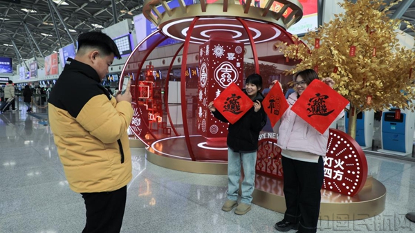 候机楼内一幅幅具有别样美感的“福”字贴画,一盏盏高高悬起的大红灯笼,将春节的仪式感氛围感拉至最满。同时,济南机场策划举办“清泉暖途 乐享新春”“泉心泉意伴旅途,灯辉锦绣庆团圆”主题活动,通过非遗体验、舞蹈表演、趣味游戏等互动环节,让旅客在候机中充分感受传统文化的魅力。