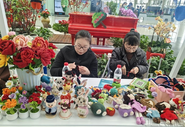 在积极助力手工艺品展示与售卖的同时,志愿者们还主动为旅客提供引导和咨询服务,全力帮助旅客解决出行过程中遇到的各类难题。正如一位志愿者所言:“看到旅客们的问题得到解决后绽放出的笑容,我内心满是成就感。”