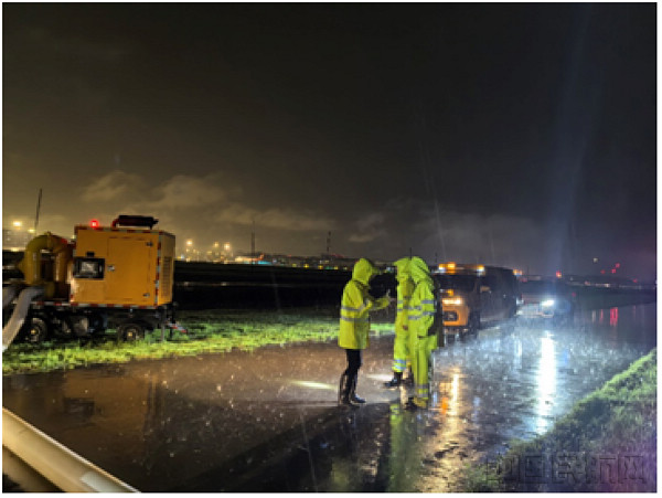 7月28日,首都机场工作人员正在进行防汛巡视(首都机场供图)
