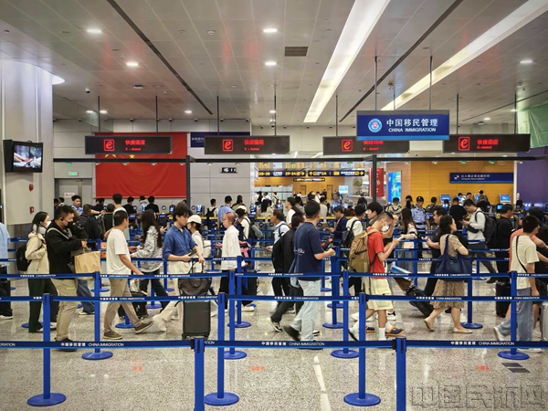繁忙的浦东机场节前出境客流高峰(上海机场边检站供图)