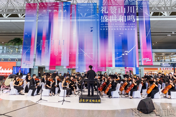 《中国民航报》、中国民航网 记者郭瑛 通讯员寇冠乔、周娟 报道:近日,由湖南机场集团与湖南出版集团、湖南演艺集团联合推出“礼赞山川·盛世和鸣”交响音乐会在湖南长沙机场温情上演。这是湖南首次实现大编制交响乐团进入机场候机大厅举行音乐会,是深化“人文机场”建设的一次创新实践,为历时3个月“三湘四水·相约湖南·市州风情周周看”画上圆满句号。
