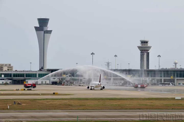 福州机场以水门迎接首航航班(本文图片均由福州机场提供)