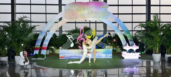 在天津滨海机场2号航站楼,天津交响乐团奏响《城里的月光》《如愿》《故乡的云》等经典曲目,天津歌舞剧院芭蕾舞团献上《唐吉诃德》《睡美人》等芭蕾选段。悠扬的旋律与优美的舞姿吸引众多旅客驻足欣赏,纷纷举起手机记录下这旅途中的美好时刻。