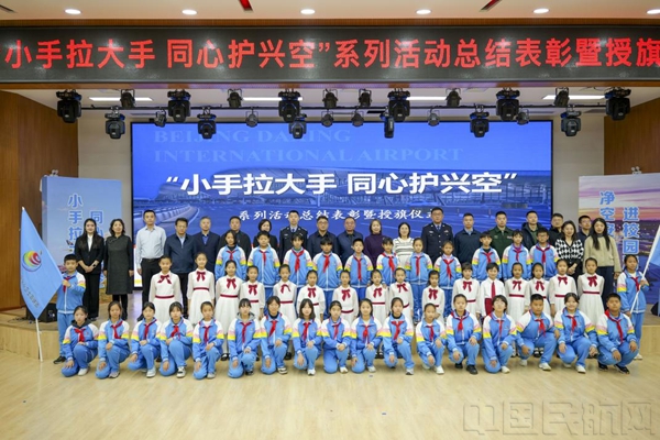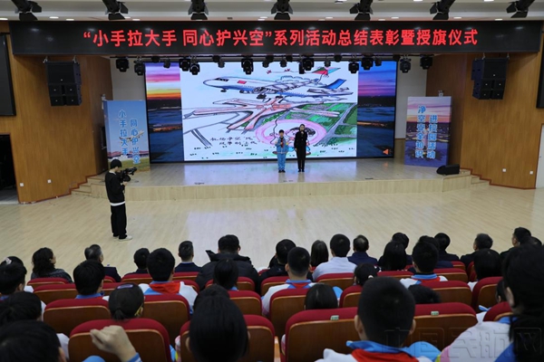 中国民航网 通讯员辛钳康、王宇航 报道:近日,“小手拉大手,同心护兴空”大兴机场净空安全宣传进校园系列活动总结仪式在榆垡镇五一小学大兴二分校隆重举行。此次系列活动以校园为纽带,旨在进一步筑牢大兴机场净空安全根基、提升社会公众净空保护意识。
