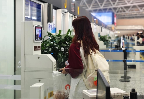 旅客使用智能安检自助化设备顺畅过检