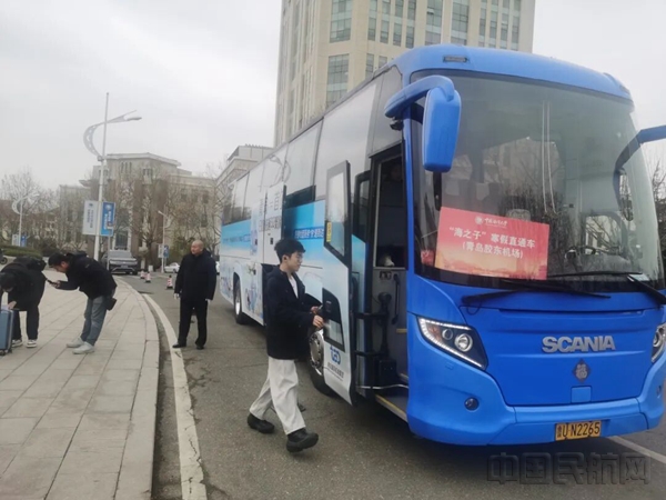 26日上午,一辆机场大巴车开进中国海洋大学崂山校区,不少准备返乡的学子陆续带着行李上车。“天冷了,快上车暖和暖和。”承运首班“暖冬直通车”的机场巴士驾驶员龙江涛一边帮忙归置行李物品,一边招呼学生上车。现场,青岛机场汽运公司工作人员耐心细致地为同学们解答关于机票预订、行李规格、班次时刻、中转衔接等问题。