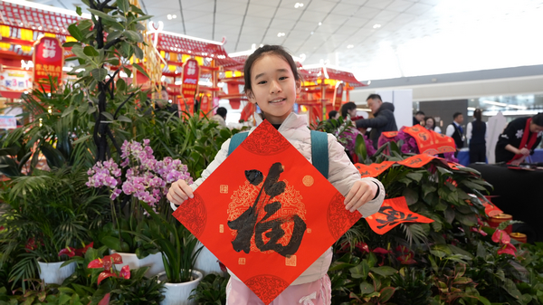 活动现场,翰墨飘香,年味浓郁,处处洋溢着喜庆热闹的节日气息。书法名家们凝神聚气、挥毫泼墨,将新春的期盼、吉祥的祝愿凝于笔端,一幅幅笔走龙蛇的春联、一个个饱满喜庆的“福”字跃然纸上,红火吉祥、年味十足。书法家们根据旅客的不同心愿,现场即兴创作、量身书写春联与福字,字字藏福、句句纳吉。不少旅客围在案前驻足欣赏、有序等候,大家笑意盈盈接福纳祥,手持墨香满满的春联与福字拍照留念,与亲朋好友分享旅途喜悦,整个航站楼处处洋溢着红火热闹的新春气息,暖意融融。