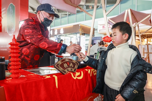 集团以“航空+文旅”为切入点,依托机场窗口优势,全方位展示江苏特色产业与地域文化,为旅途增添温度。在南京机场,书法家们挥毫泼墨开展“骏马送福,红联迎春”写对联送福字活动,国风巡游快闪精彩上演,非遗集市里,一盏灯彩、一缕糖画,汇聚成可触摸的年味。徐州机场“彭城腾骏马蹄疾 空港迎春万里行”主题活动热闹非凡,新春投福、福气盲盒红包墙人气火爆,徐州方特的熊大熊二与财神爷闪现候机楼,萌趣快闪惊喜不断。常州机场联合市文旅局打造非遗文化市集,旅客在候机间隙便可沉浸式赶一场“可尝可感”的江南雅集。连云港机场将西游神话藏进登机牌,推出师徒五人专属印章。淮安机场“淮安韵味·空港年礼”展销集市内,汇聚非遗糖画、浦楼酱醋、高沟捆蹄等近40家本土好物。盐城机场设置祈福打卡墙与暖心打卡点,旅客提笔写下心愿、系上福牌,把牵挂都藏进字里。扬泰机场“儿童友好”新春主题活动暖心上演,小小福娃们写福送福、体验非遗拓印,用童真行动温暖归途。