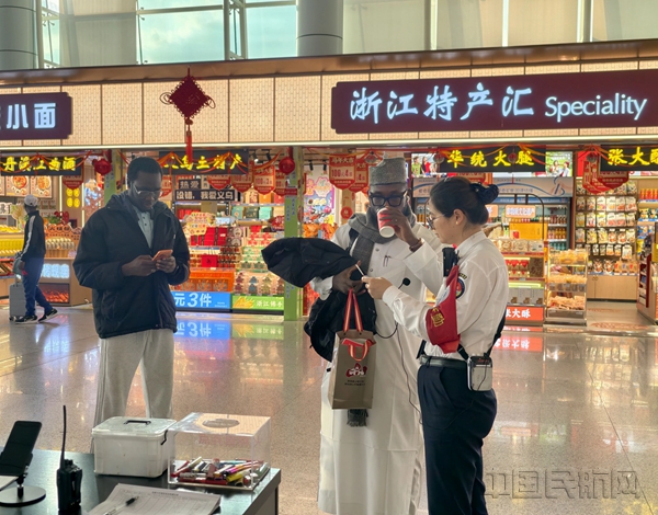 安检通道前,几位拎着编织袋、拉着行李箱的中东旅客正用手机对着二维码扫码;值机柜台前,一位非洲客商比画着手势,用蹩脚的中文说着“广州、广州”。如果不是身处方言环绕的浙中大地,恍惚间还以为置身于某个国际枢纽空港。