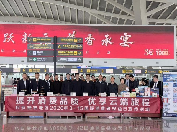 《中国民航报》、中国民航网 记者冯智君 报道:2026年3月15日,民航桂林监管局组织辖区各单位在桂林机场T2候机楼开展“3.15国际消费者权益日”系列宣传活动。活动围绕“提振消费品质,优享云端旅程”主题,结合丰富多彩的节目表演和游戏互动,让旅客沉浸式感受航空出行新体验。