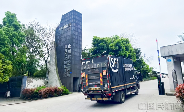 满载永川本地货物的物流车辆从永川航空城市货站缓缓驶出(本文图片均由重庆机场集团提供)