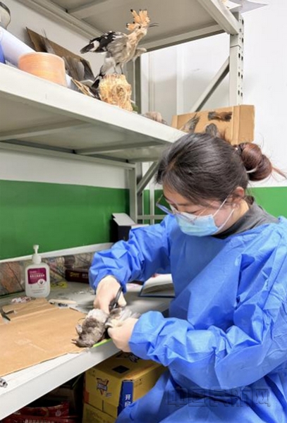 标本制作中,工作人员对拦鸟网收集到的鸟类尸体进行规范收集,经过细致分拣、防腐定型、形态整理与专业装帧,成功制作完成戴胜等7种鸟类的羽毛标本册及翅膀、尾羽标本框。这些标本完整保留了鸟类的羽毛纹理与形态特征,为鸟击残留物的快速准确鉴定提供了直观权威的实物参照,有效破解了以往鸟击事件中物种鉴定难、耗时长等问题,显著提升了后续应急处置与风险排查的精准性,为针对性开展鸟害防治、减少同类鸟击重复发生提供了重要依据。
