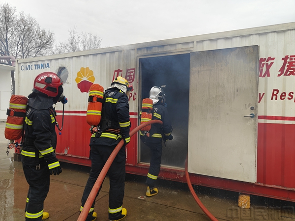 中国民航网 通讯员李兵兵 报道:4月27日,应急保障部消防支队依托自主研发的集装箱高仿真消防训练设备,开展航空火灾专项实战训练。