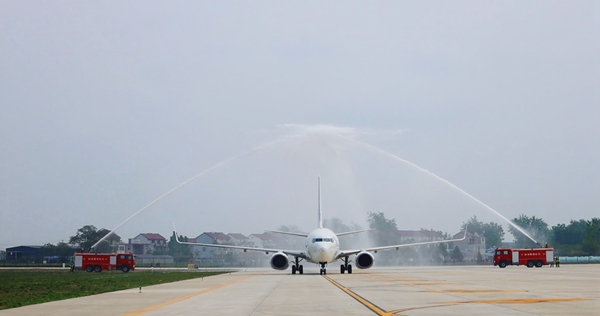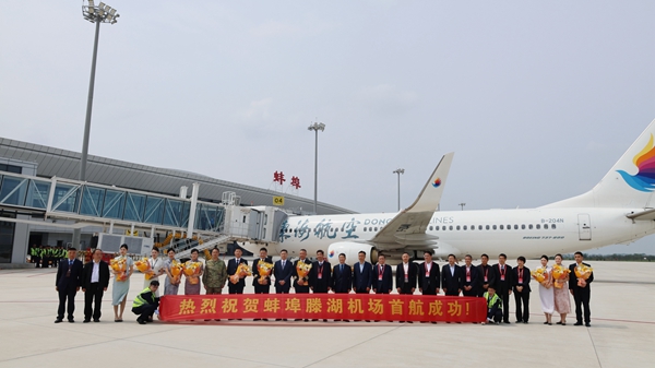 《中国民航报》、中国民航网 记者梁永军、冯智君 报道:4月29日上午10时许,东海航空 DZ6253 航班平稳降落在蚌埠滕湖机场,在民航最高礼遇 “水门仪式” 的迎接下,圆满完成本次首航保障任务。此次首航落地,标志着蚌埠滕湖机场正式通航,东海航空全新深圳—蚌埠航线成功开通,进一步丰富公司航线网络布局,有效串联粤港澳大湾区、皖北地区与东北城市群,构筑跨区域高效联通的空中纽带。