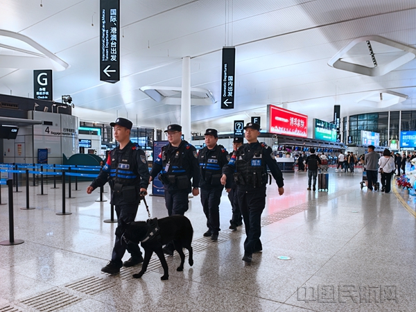“妈妈快看,有警犬!”在宁波机场出发大厅,一位春假出游的小旅客指着巡逻警犬兴奋地说。 从今年初开始,宁波市公安局机场分局便启用携犬巡逻模式,结合车巡、步巡、智慧巡,构建多元化巡防体系,有效提升见警率和震慑力。这支携犬巡逻队一亮相,便引起了不少旅客尤其是孩子们的关注,让往来旅客更直观地感受到安全就在身边。针对假期客流集中、家庭旅客占比高的特点,宁波机场公安组织警力对辖区开展“拉网式”排查。机场公安民警紧盯重点部位和重点环节,对安全隐患“零容忍”,及时记录并督促整改,坚决将风险消除在萌芽状态,为旅客营造安全的出行环境。