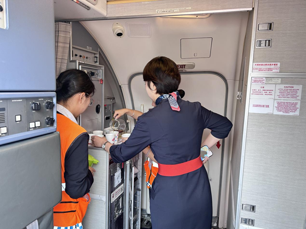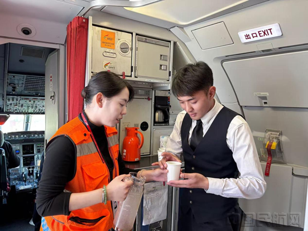 服务看似简单,落到细节上却处处是用心。为了让机组喝到口感最好的热饮,他们把出杯和配送的温差拿捏得恰到好处;到了夏天,冰镇咖啡也同步备好,一热一冷两壶同时送上飞机,让机组各取所需。在安全规范上,班组每天对器具清洁消毒、食材新鲜度逐一检查,部门每月核验,确保食品安全卫生绝不出一丝纰漏,配送时机严格遵守流程,绝不影响飞行运行。每一杯送上飞机的热饮,都带着地服人的妥帖心意,既暖胃,更安心。
