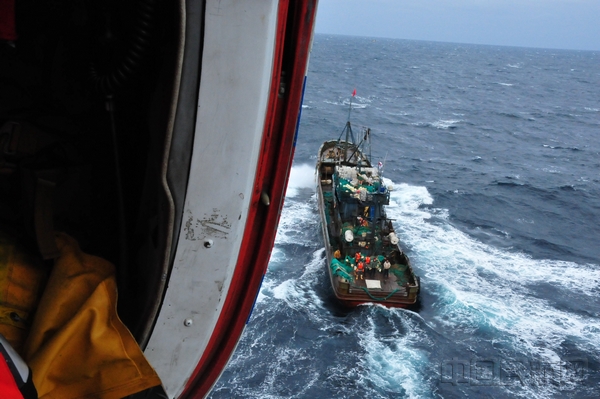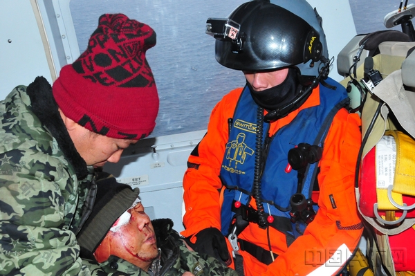 当日09:48时,交通运输部北海第一救助飞行队蓬莱基地接北海救助局转山东日照海上搜救中心救助信息指令,蓬莱机场东南215海里、威海石岛东南120海里(N35°10′、E123°49′)“鲁荣渔58117”船上一名渔民头部重伤凹陷流血不止,情况紧急,请派专业直升机前往救助。