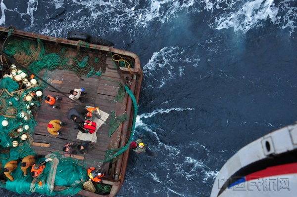 所有工作准备就绪后飞行机组人员开始登机,10:23时,B-7313从蓬莱机场起飞直飞威海机场,11:05时,直升机在威海落地加油并于11:30时再次起飞直飞救助区,50分钟后抵达现场。此时,现场风力7级、浪高3米,渔船上下左右起伏不定。机组根据救助现场和渔船的实际情况决定按标准甲板模式吊运。绞车手先将一名救生员通过钢索放到甲板上,随后,机组人员通过娴熟默契的配合,分两次吊运将陪同和受伤渔民吊进机舱。现场作业完成后B-7313救助直升返航,于13:36时在威海机场落地。随后,机组人员将被救渔民及陪同转至120送往威海当地医院救治。救助任务结束后直升机于14:20时从威海机场起飞,15:09时在蓬莱机场落地,圆满完成本次救助。