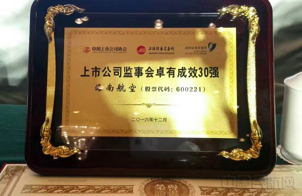 中国民航网 通讯员黄玉茹 报道:2016年12月15日,海南航空股份有限公司(以下简称“海南航空”)在由中国上市公司协会、上海证券交易所、深圳证券交易所联合主办的“上市公司监事会最佳实践评选活动”中摘获“上市公司监事会卓有成效30强”。
